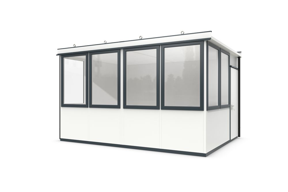 Systém venkovních buněk a kanceláří MultiRoom Outdoor je určen pro instalaci ve venkovním prostředí, například jako vrátnice, kancelář, nebo odpočinková místnost. Díky jednoduché a standardizované konstrukci je možné tyto prostory zrealizovat v krátké dodací lhůtě a cenově výhodně. Stěny jsou sendvičové prvky, vnější plášť z pozinkovaného ocelového plechu s práškovým nástřikem šedobílé barvy RAL 9002. Jednoduché zasklení ESG, tl. 5 mm v hliníkovém rámu. Vnitřní obložení stěn z bílých dřevovláknitých desek. Vnitřní izolace stěnových prvků 40 mm silnou vrstvou minerální vlny. Podlaha je z šedého PVC.