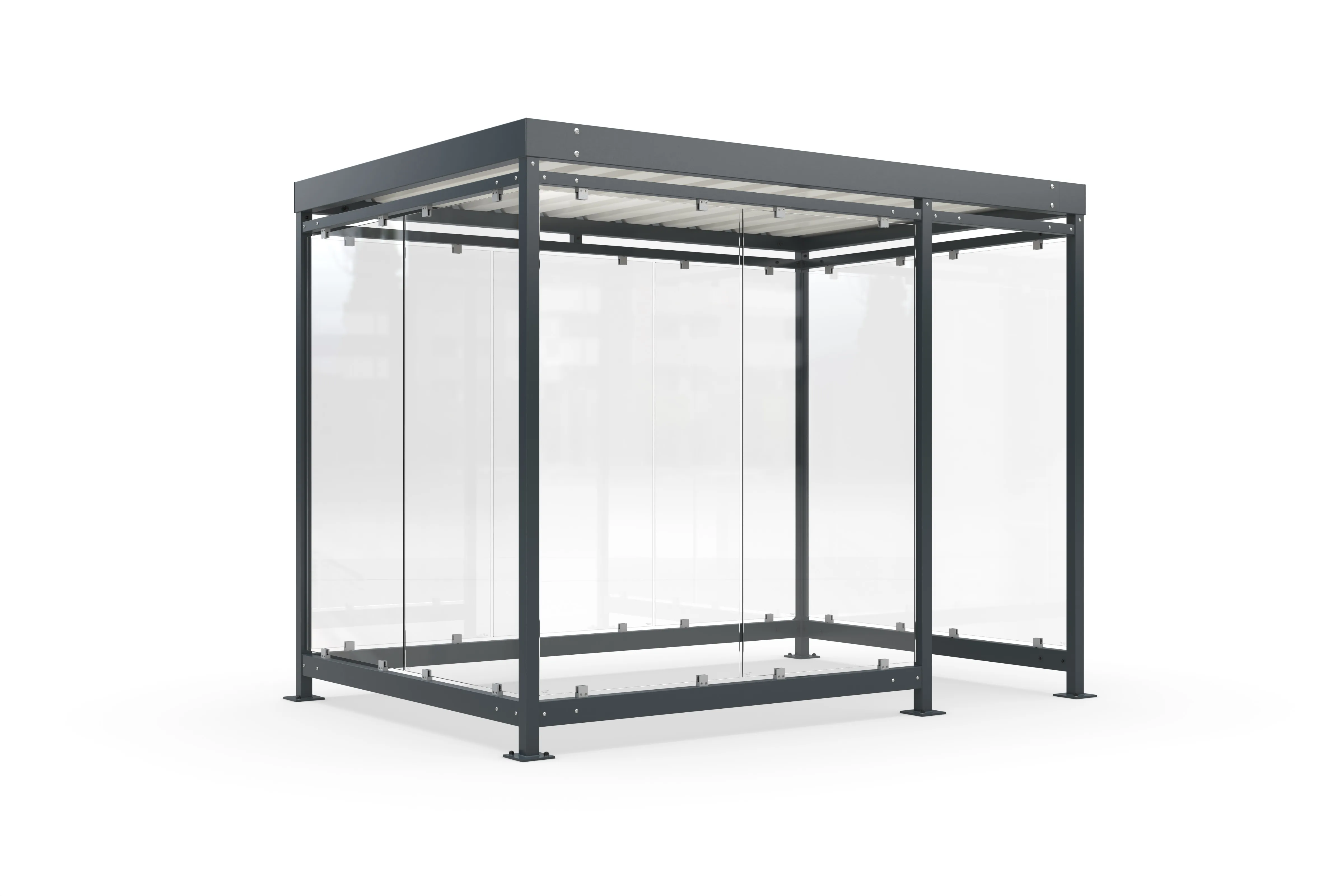 Žárově pozinkovaná ocelová konstrukce zajišťuj optimální ochranu proti pověrnostním podmínkám. Střecha je vyrobena z pozinkovaného trapézového plechu. Dodává se v různých rozměrech. Je možné doplnit zadními i bočními stěnami.