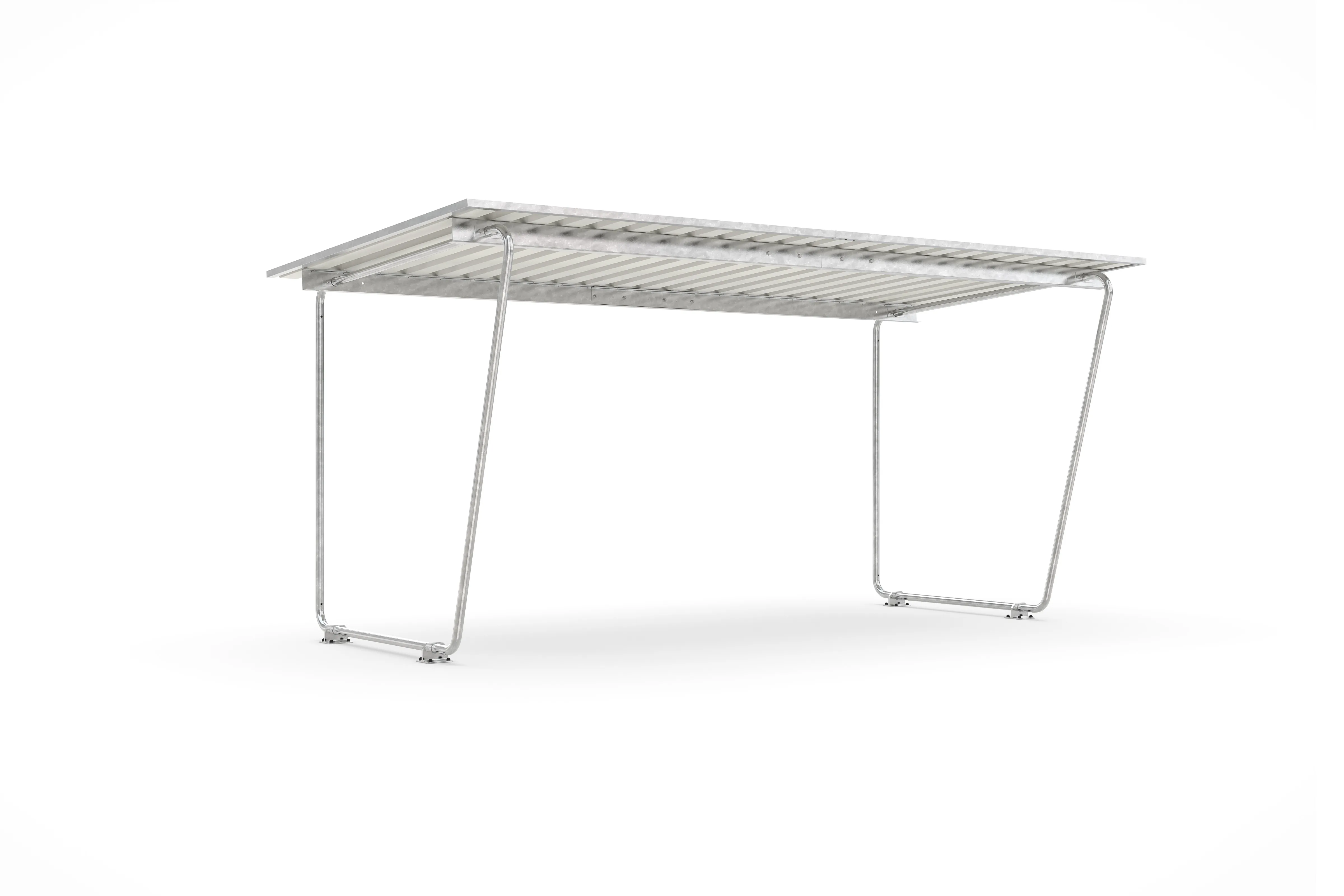 Model Siegen je ideálním řešením pro kryté parkování kol ve veřejných i soukromých prostorách. Jednostranná ocelová konstrukce přístřešku přesvědčí svou spolehlivou stabilitou, vysoce kvalitním zpracováním a odolností. Střecha je vyrobena z pozinkovaného trapézového plechu s práškovým nástřikem v barvě RAL 9002, přístřešek je možné doplnit zadní stěnou z trapézového plechu s práškovým nástřikem a bočními stěnami z trapézového plechu, nebo průsvitného polykarbonátu. K dispozici jsou jednostranná i oboustranná provedení. Jedná se o modulovou konstrukci, kterou je možné rozšiřovat do řady pomocí přístavných prvků. Modelová řada Siegen jsou jednoduché, univerzální a cenově výhodné přístřešky, které je možné použít jako přístřešky parkování jízdních kol, nebo motocyklů, případně jako přístřešky na materiál. Jsou dodávány v demontovaném stavu, montáž rádi zajistíme.