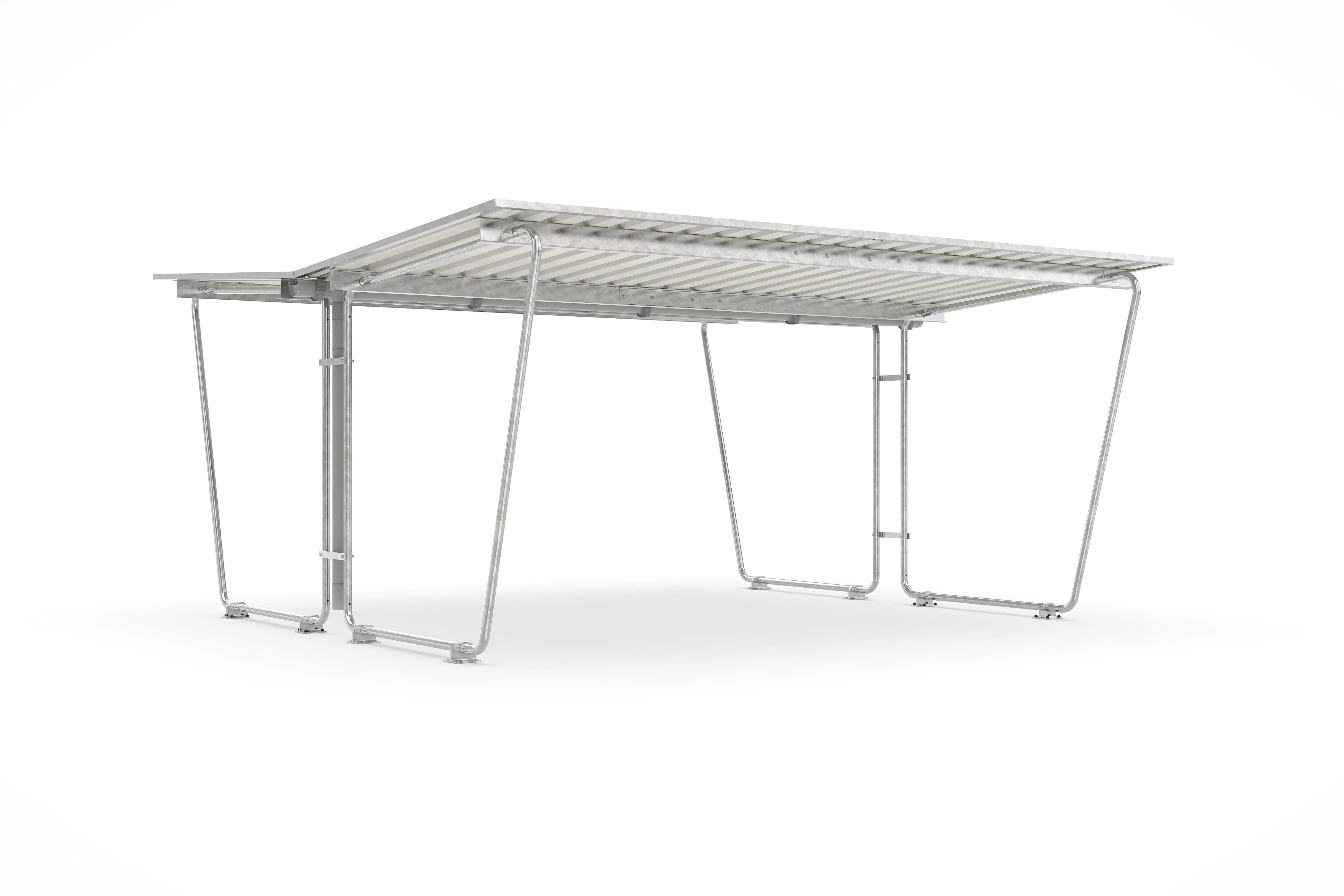Model Siegen je ideálním řešením pro kryté parkování kol ve veřejných i soukromých prostorách. Jednostranná ocelová konstrukce přístřešku přesvědčí svou spolehlivou stabilitou, vysoce kvalitním zpracováním a odolností. Střecha je vyrobena z pozinkovaného trapézového plechu s práškovým nástřikem v barvě RAL 9002, přístřešek je možné doplnit zadní stěnou z trapézového plechu s práškovým nástřikem a bočními stěnami z trapézového plechu, nebo průsvitného polykarbonátu. K dispozici jsou jednostranná i oboustranná provedení. Jedná se o modulovou konstrukci, kterou je možné rozšiřovat do řady pomocí přístavných prvků. Modelová řada Siegen jsou jednoduché, univerzální a cenově výhodné přístřešky, které je možné použít jako přístřešky parkování jízdních kol, nebo motocyklů, případně jako přístřešky na materiál. Jsou dodávány v demontovaném stavu, montáž rádi zajistíme.
