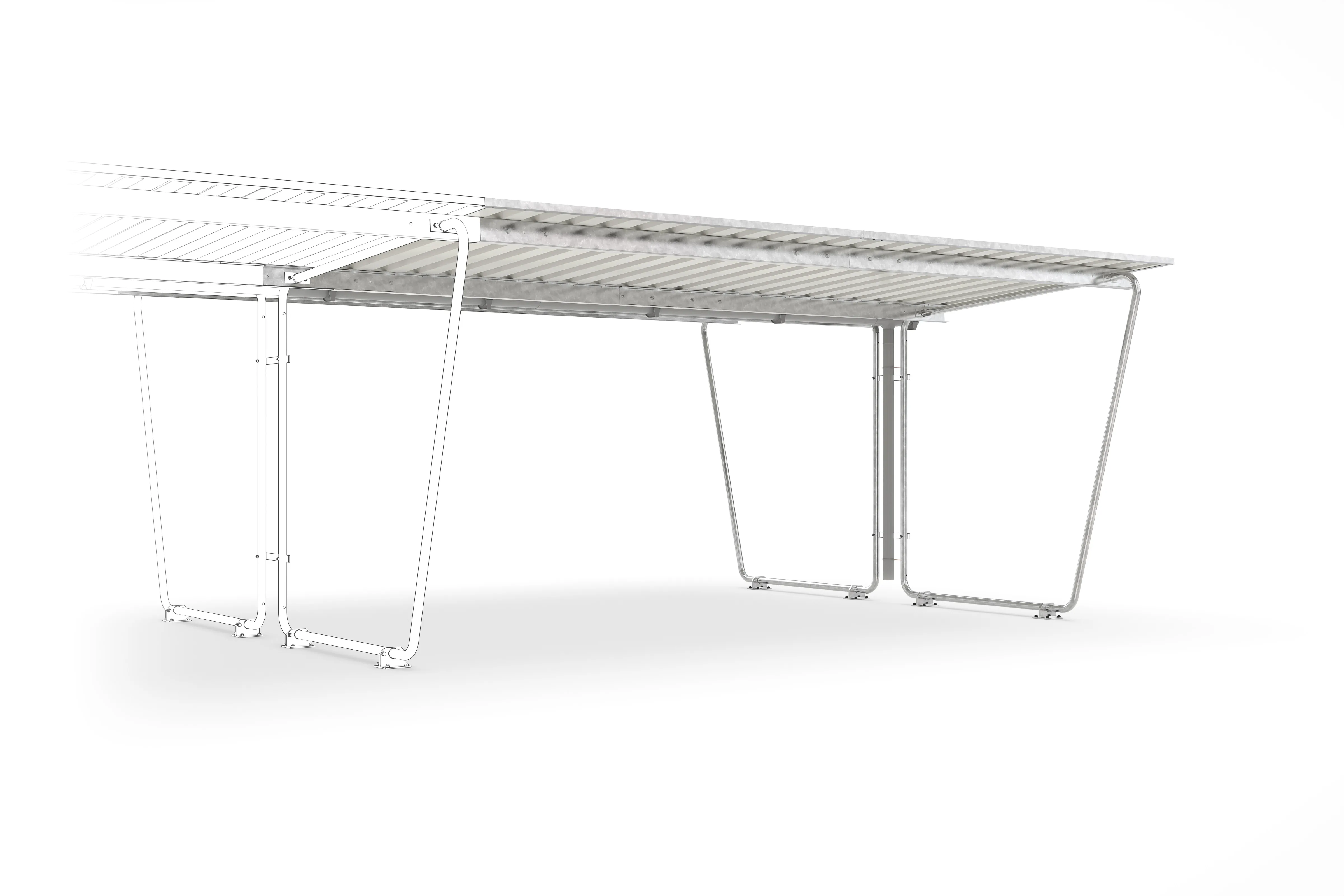 Model Siegen je ideálním řešením pro kryté parkování kol ve veřejných i soukromých prostorách. Jednostranná ocelová konstrukce přístřešku přesvědčí svou spolehlivou stabilitou, vysoce kvalitním zpracováním a odolností. Střecha je vyrobena z pozinkovaného trapézového plechu s práškovým nástřikem v barvě RAL 9002, přístřešek je možné doplnit zadní stěnou z trapézového plechu s práškovým nástřikem a bočními stěnami z trapézového plechu, nebo průsvitného polykarbonátu. K dispozici jsou jednostranná i oboustranná provedení. Jedná se o modulovou konstrukci, kterou je možné rozšiřovat do řady pomocí přístavných prvků. Modelová řada Siegen jsou jednoduché, univerzální a cenově výhodné přístřešky, které je možné použít jako přístřešky parkování jízdních kol, nebo motocyklů, případně jako přístřešky na materiál. Jsou dodávány v demontovaném stavu, montáž rádi zajistíme.