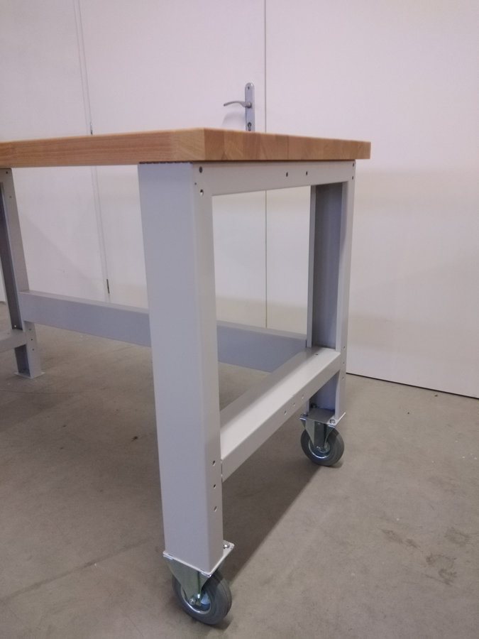 1x DP NOH 17U PP - Pojízdná noha - pevné kolo. Noha je konstruována jako masivní svařenec, je opatřena otvory pro spojení s deskou stolu a výztužnými prvky. Kola mají průměr 125 mm, materiál PP. Výška nohy je 840 mm.