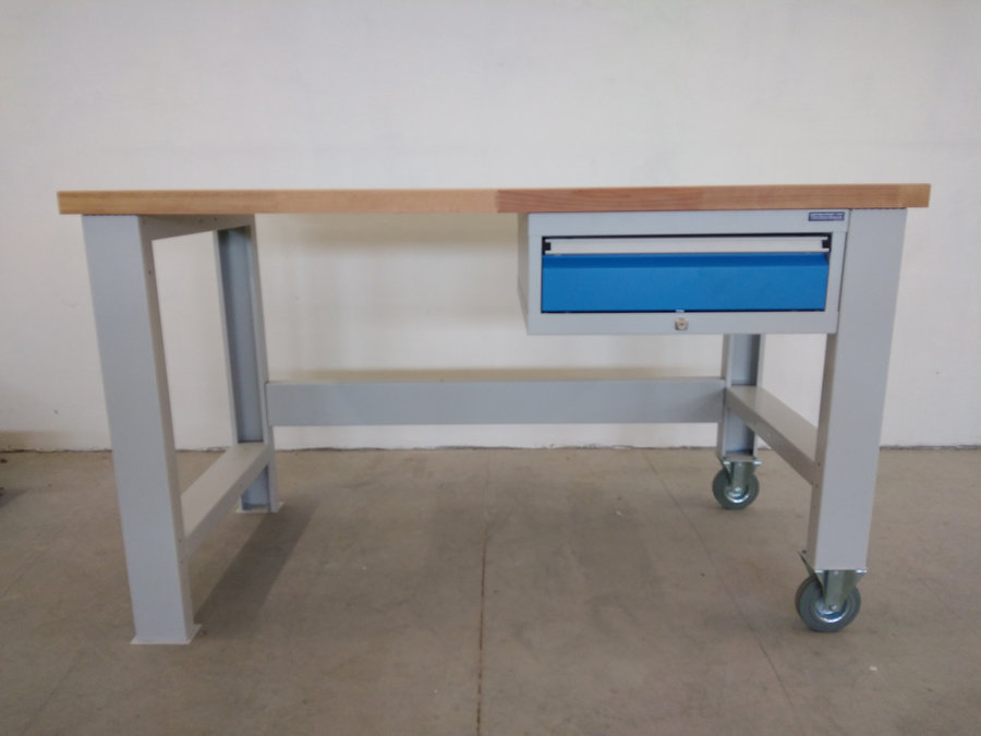 Pracovní stůl s pojízdnou nohou a jednozásuvkovým kontejnerem.