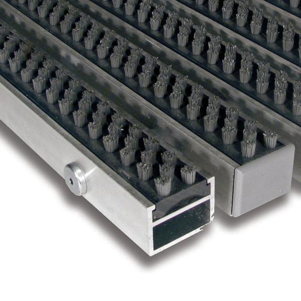 Základem rohože Alu Super jsou hliníkové profily o šířce 27 mm, které jsou spojeny nerezovým lankem a odděleny pryžovými mezikroužky, tím je umožněno stáčení rohože a jednodušší manipulaci při úklidu. Do hliníkových profilů se pevně fixují kartáčové pásky, které se používají jako čistící zóna k odstranění hrubých nečistot. Kartáčové pásky lze libovolně kombinovat a po opotřebení vyměnit. Nejčastější použití vstupní čistící zóny vstupní prostory letišť, hotelů, bank, restaurací, administrativních budov i rodinných domů Vlastnosti vynikající očištění obuvi od nečistot před vstupem do objektů jednoduchá údržba Technický popis délka: 1500 mm - délka plochy, která čistí obuv ve směru chůze šířka: 1000 mm - délka proužků, někdy též šířka dveří výška: 27 mm hmotnost: 27 kg zatížení: do 8,5 t / 100 cm? barva: šedá Montáž / instalace Rohož je možné v úrovni podlahy uložit do připraveného otvoru osazeného hliníkovým / nerezovým rámem šířky 30, výšky 30 a tloušťky 3 mm. Rohož je taktéž možné volně položit spolu s náběhovým rámem širokým 65 mm, popř. 45 mm pro rohože do max. délky 120 cm.