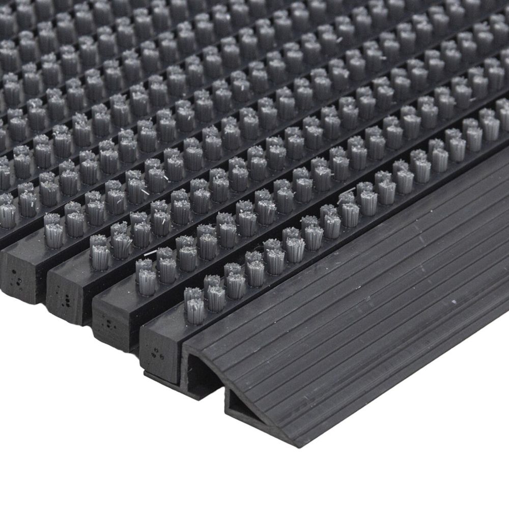Kvalitní vstupní čistící rohož Outline s kartáčovacím efektem a hliníkovým nájezdem, vyznačující se dlouhou životností pro všechny vstupní prostory. Vstupní rohož má vynikající čisticí vlastnosti díky nylonovým kartáčům, prvotřídní zpracování s extrémní odolnosti vůči povětrnostním vlivům, plísním, tlení a zápachu. Na přední straně rohože je připevněna nájezdová hliníková lišta zabraňující zakopnutí a případný pohodlný přejezd vozíků nebo kočárků. Vstupní rohož je možné omývat vysokotlakou vodou a v případě potřeby srolovat. Nejčastější použití vstup do rodinného domu, bytu, na terasu menší restaurace, bary, kavárny menší obchody, penziony a hotely Vlastnosti kvalitní hliníková vstupní čistící rohož odolnost vůči povětrnostním vlivům, plísním, tlení a zápachu dlouhá životnost s vysokou čistící schopností vynikající čistící vlastnosti díky nylonovým kartáčům s nájezdovou hliníkovou lištou Technické údaje materiál: 100% polypropylen - hliníková náběhová hrana barva: černo-šedá (grigio pure black) délka: 40 cm šířka: 60 cm výška: 2,2 cm hmotnost: 3,68 kg
