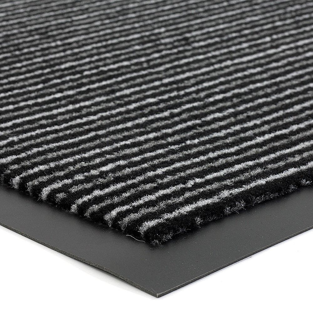 Textilní čistící vnitřní vstupní rohož Scala je vhodná k dočištění obuvi do běžně namáhaných vstupů do budov, rodinných domů, bytů a kanceláří. Horní vrstva rohože je vyrobena ze 100% polypropylenu, rubová strana rohože je z vinylu se zpevněným zkoseným okrajem zabraňujícím zakopnutí. Textilní rohož Scala má vysokou čistící schopnost a je vyrobena v praktickém designu jemného proužku s drážkami zachycující nečistoty. Vstupní čistící rohož Scala se čistí běžnými čisticími prostředky. Nejčastější použití polypropylenová rohož pro vnitřní prostory místa s běžným provozním zatížením vstupy do budov a kancelářských prostor rodinné domy, byty, kanceláře menší obchody, penziony a hotely restaurace, kavárny, bistra, bary obchody, showroomy, banky Vlastnosti horní vrstva ze 100% polypropylenu vinylový podklad se zpevněným okrajem jemné proužky s drážkami zachycující nečistoty Technické údaje materiál: 100% polypropylen podklad: vinyl barva: antracitová výška: 5 mm délka: 60 cm šířka: 80 cm hmotnost: 1,21 kg hmotnost: 2400 g/m?